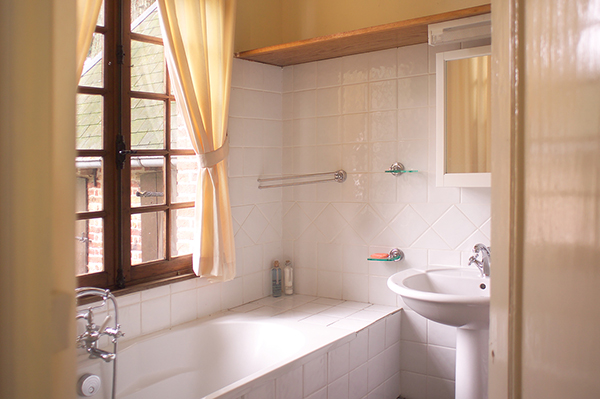 Deze badkamer grenst aan "la Chambre Rouge". Aanwezig is een bad, wastafel en toilet.