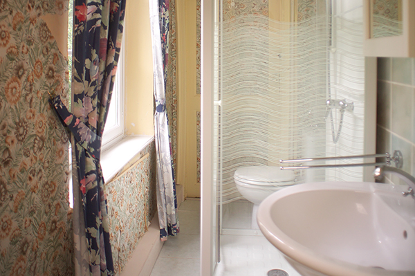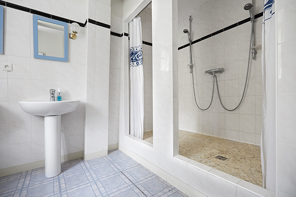 Deze badkamer grenst aan "la Chambre Bleu" en "la Chambre Rose". Aanwezig is douche, wastafel en toilet.