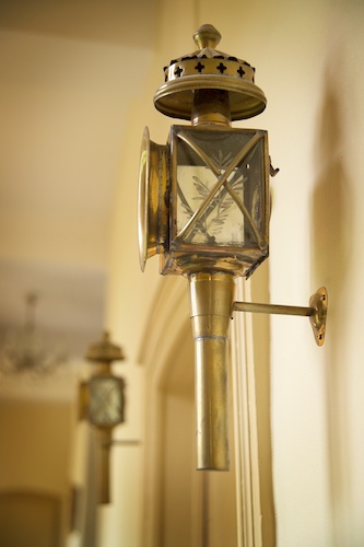 De hoofdingang van het Château geeft toegang tot de centrale hal met een fraai trappenhuis dat tot de zolder doorloopt. In de hal, onder de trap, is een toiletruimte gecreëerd.
