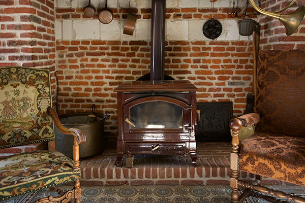 De keuken is goed geoutilleerd met onder andere; 2 koelkasten, vaatwasser, vrieskast (achter kelderdeur), magnetron (annex heteluchtoven), een fornuis van Lacanche en radio/CDspeler. De keuekn is verwarmd via centrale verwarming, maar voor extra warmte of gezelligheid staat er een houtkachel.