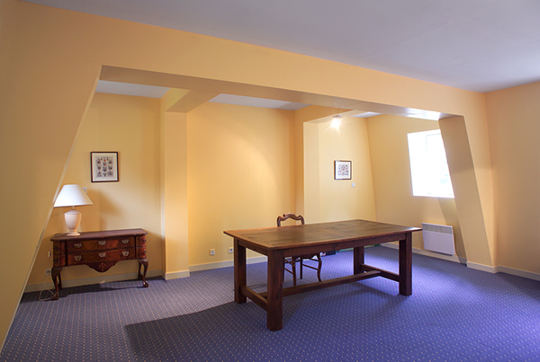 De "warmste" kamer van Château de Neuvillette. Een echte familiekamer met een grote hoekbank. Er kan ontspannen naar een tv programma of film gekeken kan worden op de flatscreen met DVD speler. Voor extra warmte een grote haardpartij.